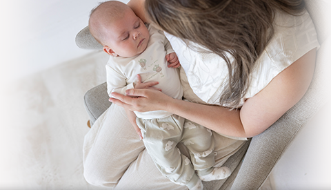 Fly me to the moon! Little elephants in hot air ballons. Soft Mint, Sand and Taupe rib, frotté and stripe mix.